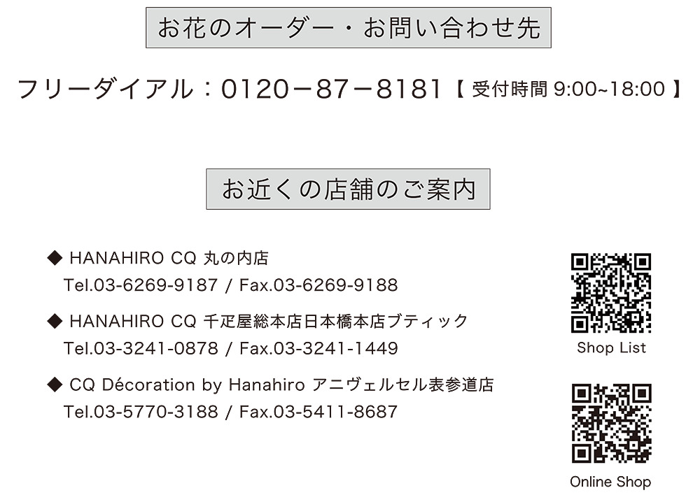 お申し込み:フリーダイヤル 0120-87-8181 株式会社花弘